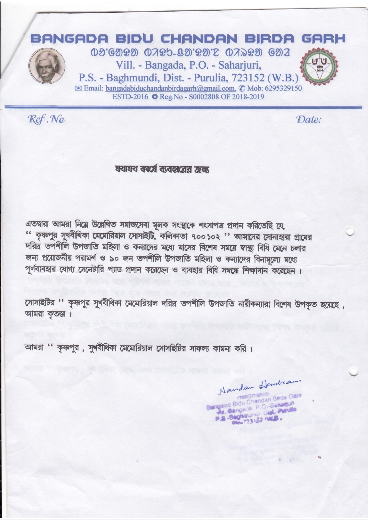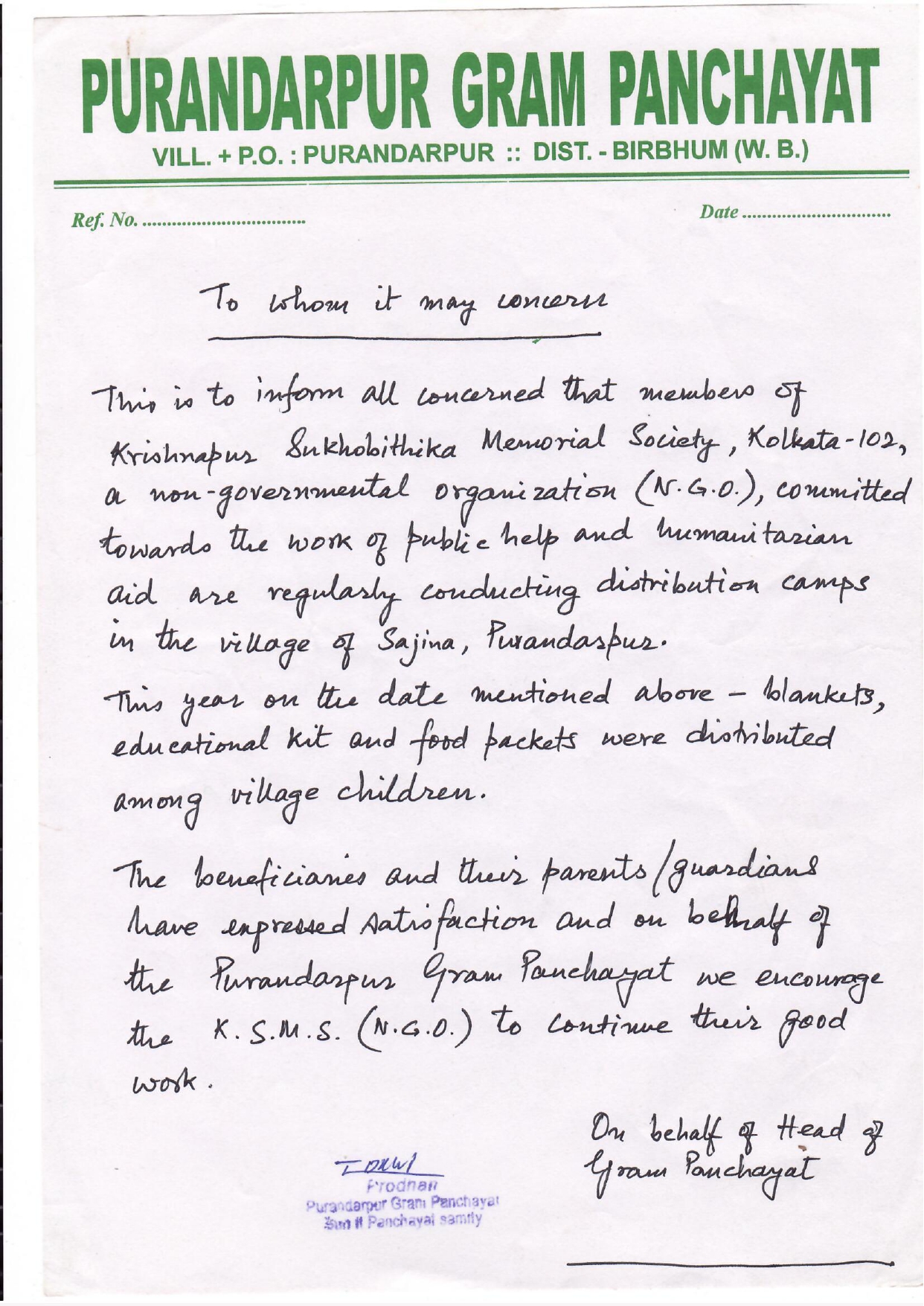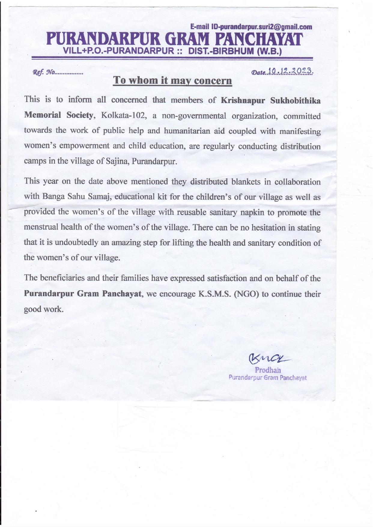 Krishnapur Sukhobithika Memorial Society's Certificates